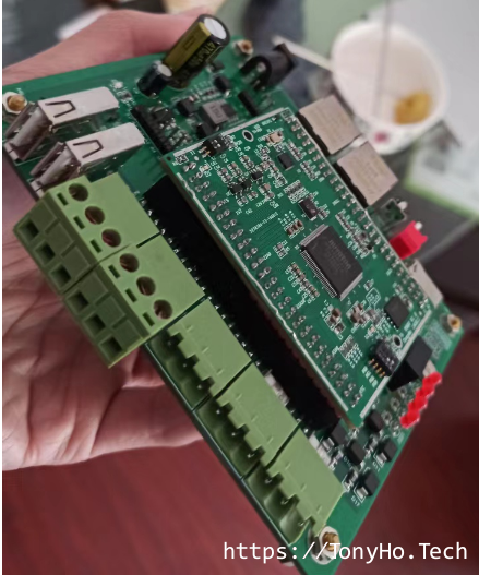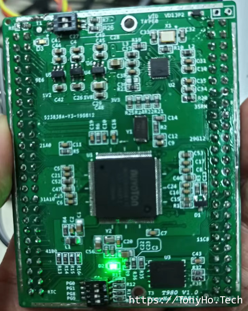 The design is in 2 parts, one is the core board, which export the NUC980 Pins using DIP. Part 2 is the base board, which export some interfaces and storage for production purpose.