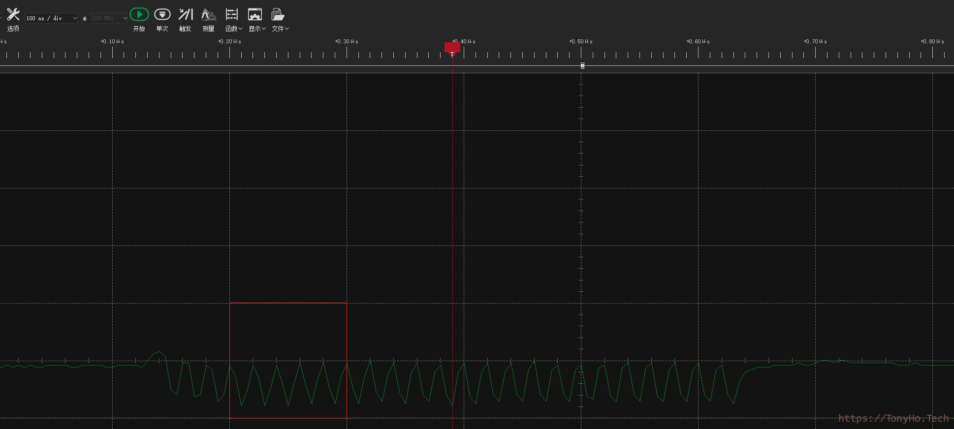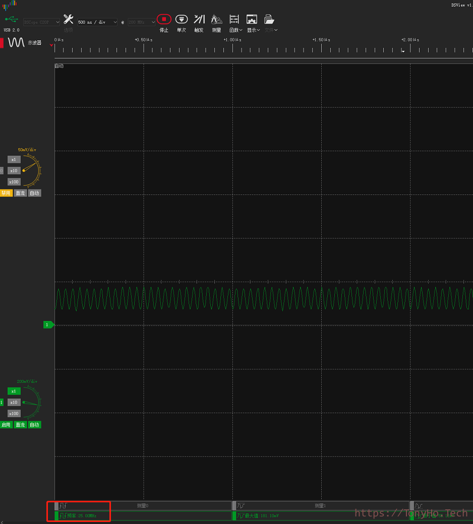Use the deveice to measure the clock, we can clearly view the 50MHz clock: